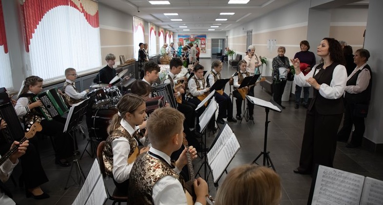 Еще до начала концерта в фойе царила оживленная и душевная атмосфера: для гостей звучала живая музыка, а также работали тематические выставки и интерактивные площадки.