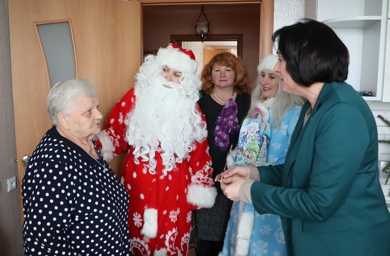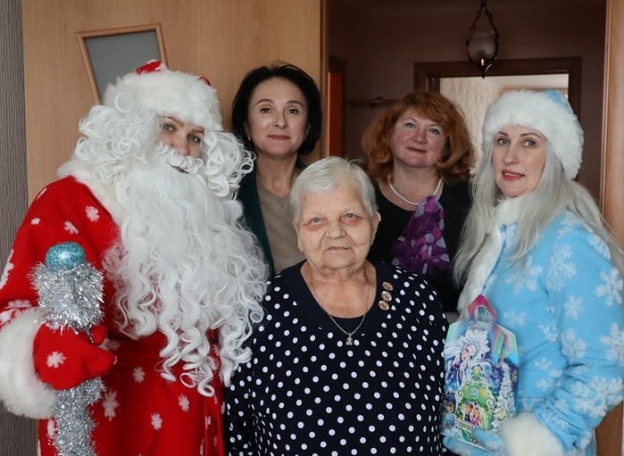 05.01.2026В гости к Софие Шустицкой и Лидии Высоцкой пришли Дед Мороз и Снегурочка поздравить с 90- летним и 100 летним юбилеем. Также тёплые слова высказали начальник отдела организации социальной помощи управления по труду, занятости и социальной защите райисполкома Лариса Коваленко и заместитель директора УТЦСОН «Теплый дом» г. Сморгони Наталья Липовая.